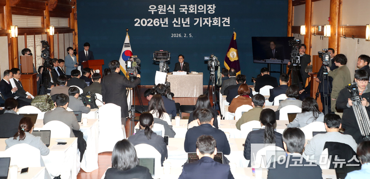 「M포토」 우원식, 국회 사랑재에서 2026년 신년 기자회견