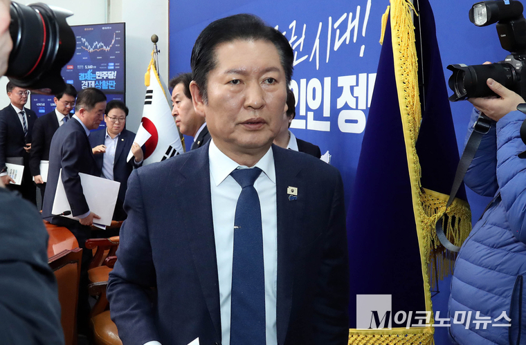 「M포토」 최고위 마치고 퇴장하는 정청래 대표