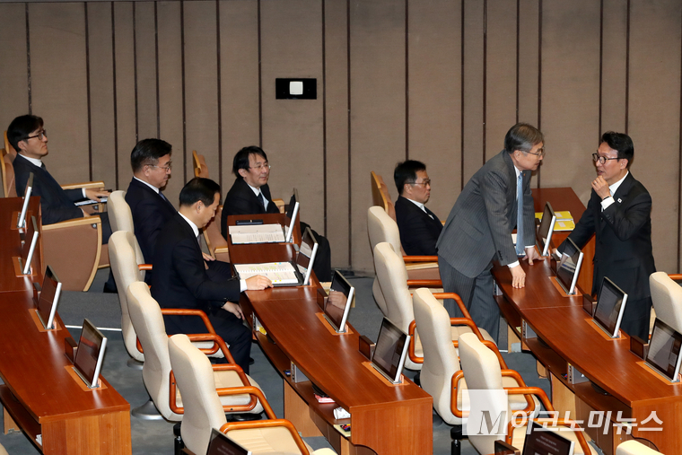 「M포토」 조현 외교부 장관과 대화하는 김민석 총리