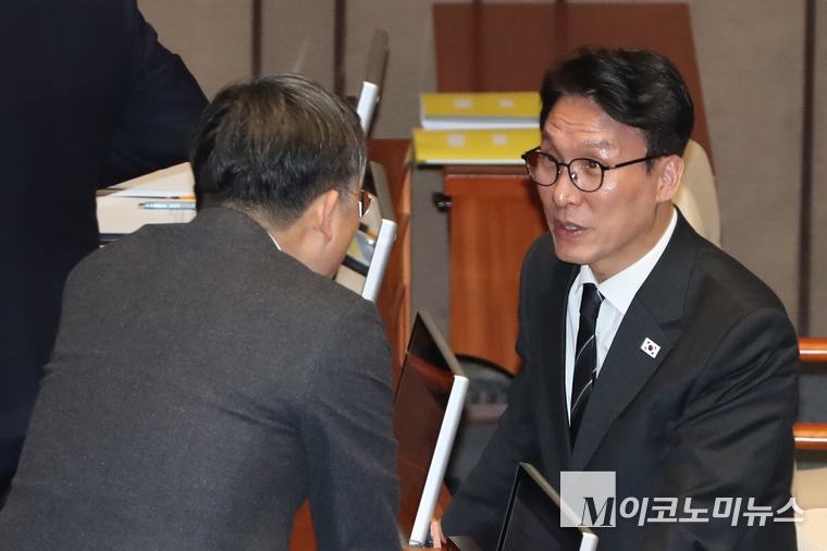 「M포토」 의원들과 대화하는 김민석 국무총리
