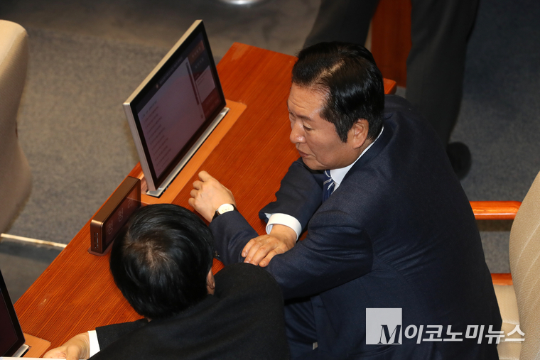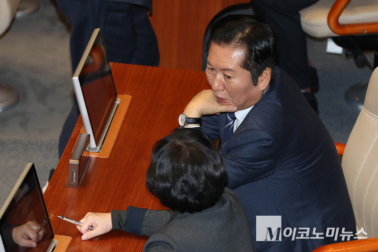「M포토」 본회의서 대화 나누는 정청래 대표