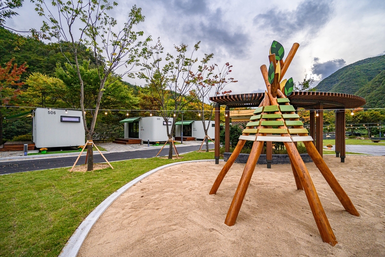 차량집처럼 꾸민 ▲캬라반(2인용5개, 6인용 6개)이 11개가 설치돼 있어 가족들이 마치 차량내부에서 야영을 하고 있다는 재미를 느낄수 있다.