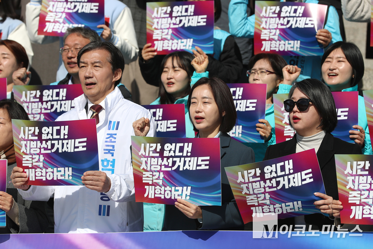 「M포토」 구호 외치는 조국-김재연-용혜인