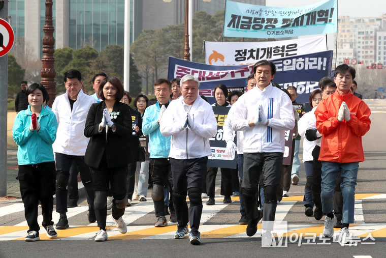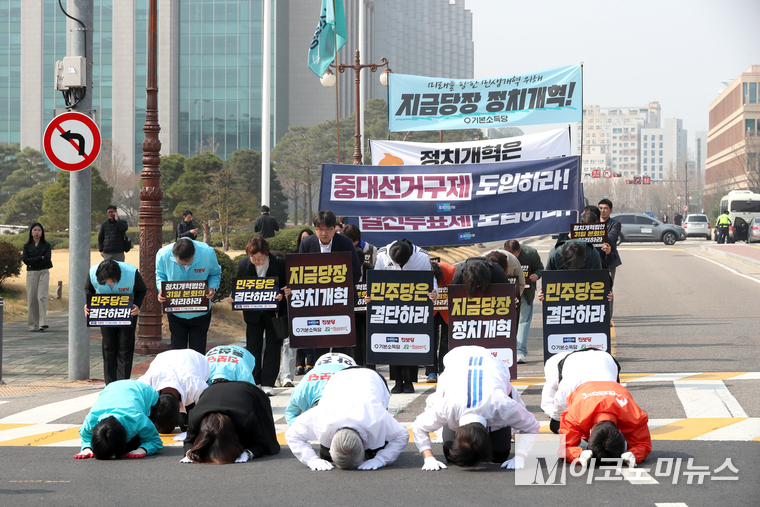 「M포토」 정치개혁 촉구...개혁진보4당 3보1배