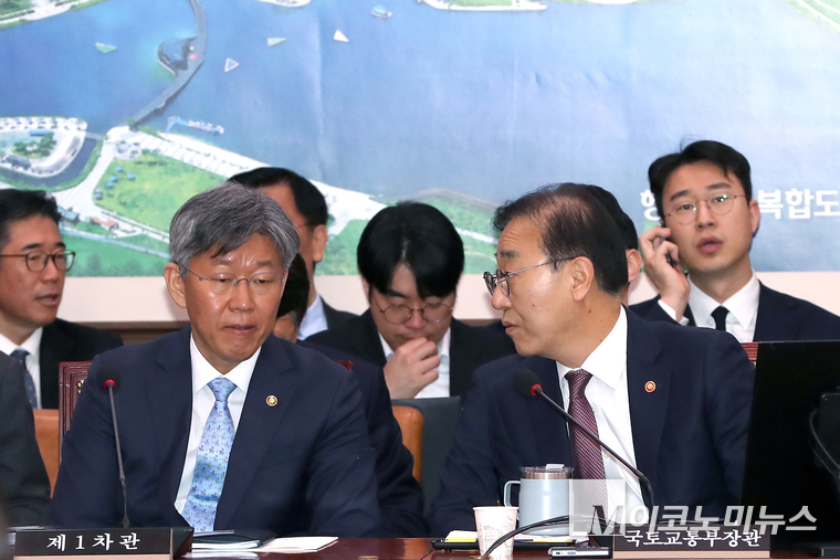 「M포토」 국토위 출석해 대화하는 김윤덕
