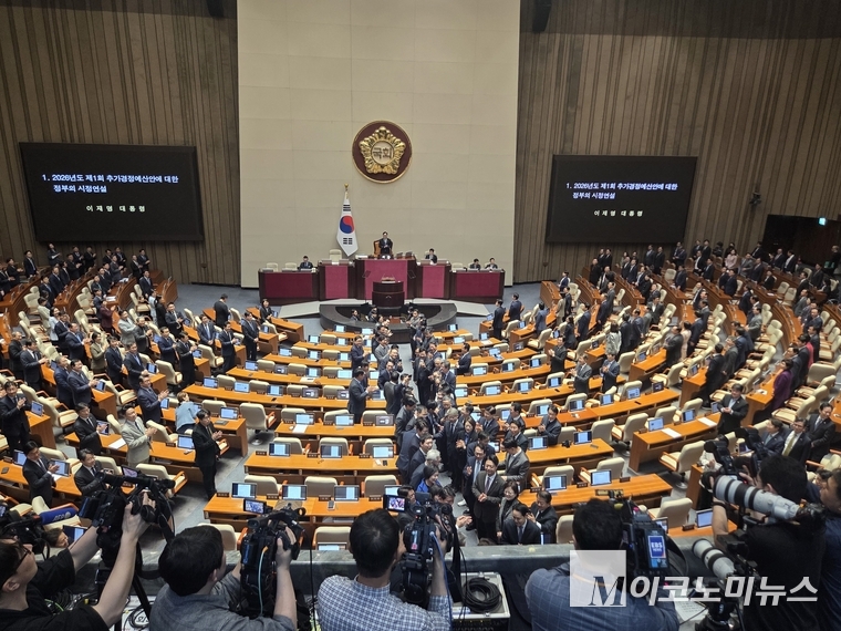 이재명 대통령은 오늘(2일) 국회 시정연설에서 중동발 에너지 안보 위기를 ‘민생 경제 전시 상황’으로 규정하고, 이를 타개하기 위한 26조 2000억원 규모의 추가경정예산(추경)안에 대한 국회의 신속한 처리를 요청했다.