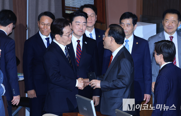 「M포토」 주호영 국민의힘 의원과 악수하는 이재명 대통령