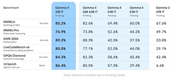 특히 31B 모델은 Arena AI 텍스트 리더보드에서 오픈모델 기준 3위를 기록했으며, 26B 모델은 6위에 올랐다. 구글은 젬마 4가 20배 큰 모델도 압도하는 성능을 보여준다고 강조했다.