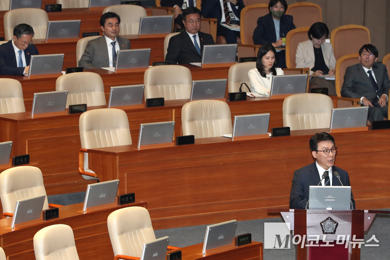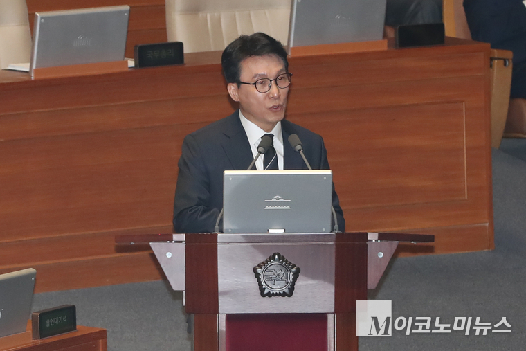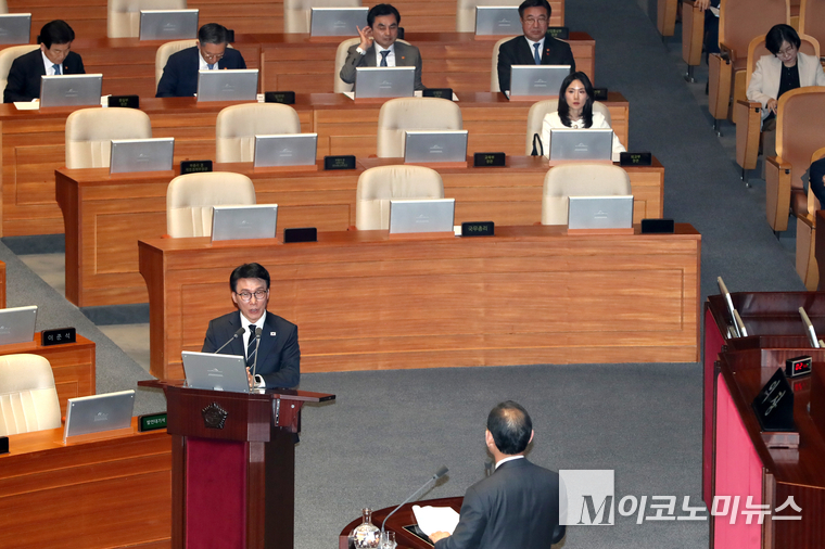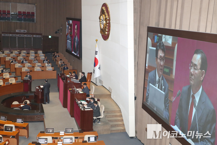 「M포토」 대정부질문에서 의원 질의에 답하는 김민석 총리