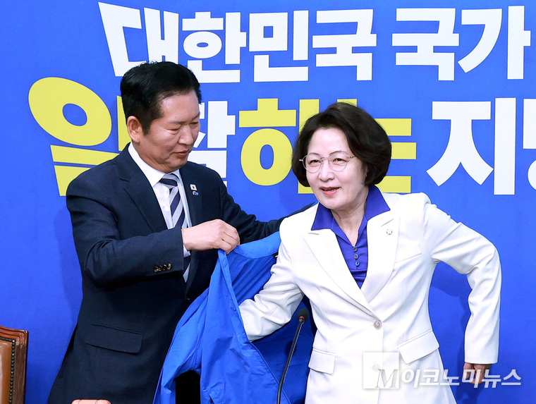 「M포토」 당 점퍼 입은 추미애 경기지사 후보