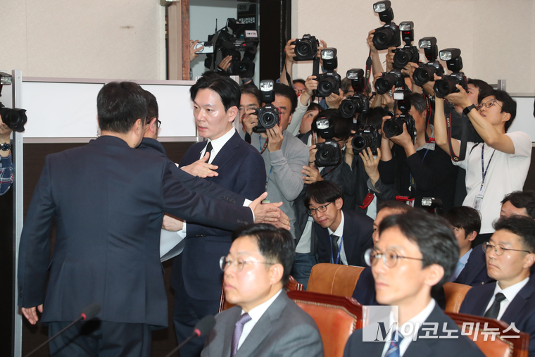 국회 ‘윤석열 정권 정치검찰 조작기소 의혹 국정조사 특별위원회’는 14일 전체회의를 열고 쌍방울 대북송금 사건 관련 청문회를 개최했지만 ‘쌍방울 대북 송금’ 사건을 수사했던 박상용 검사가 청문회에서 증인 선서를 거부하면서 특위는 아수라장이 됐다. 서영교 특위 위원장은 대기 장소로 이동 조처를 했지만, 박 검사는 강하게 소명을 요구했지만 결국 퇴장했다.