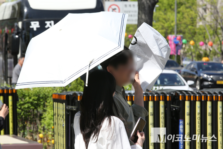 「M포토」 때 이른 한여름 더위에 반팔에 양산도 등장