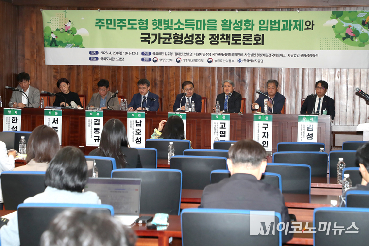 23일 ‘주민주도형 햇빛소득마을 활성화 입법과제와 국가균형성장 정책토론회’가 더불어민주당 안호영·김주영·김태년 의원과 더불어민주당 국가균형성장특별위원회, (사)햇빛배당전국네트워크, (사)균형성장혁신이 공동 주최하고 행정안전부, 기후에너지환경부, 농림축산식품부. 한국에너지공단 후원으로 국회에서 열렸다.