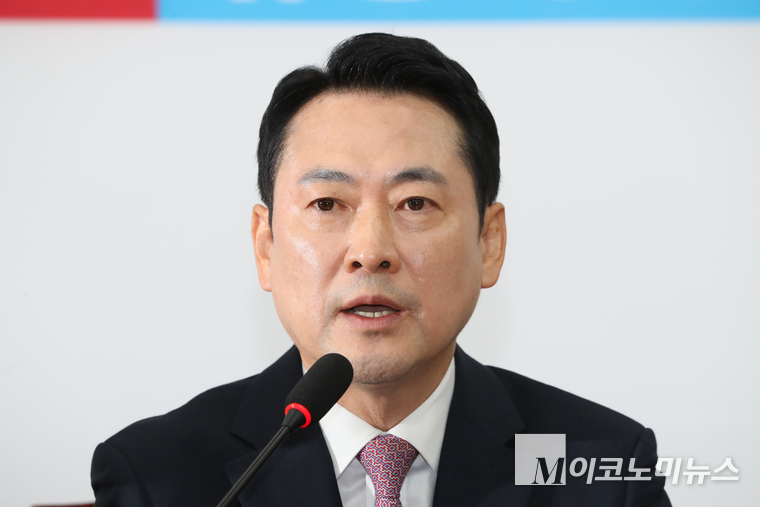 「M포토」 기자간담회에서 발언하는 장동혁 국민의힘 대표