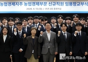 농협경제지주는 13일 서울 중구 농협중앙회 본관에서 ‘2026년 상반기 농업경제부문 신규직원 임용장 교부식’을 개최했다고 밝혔다. 김주양 대표는 공개채용 절차를 거쳐 선발된 신규직원 28명에게 임용장을 전달하고 농협 배지를 달아주며 환영과 격려의 뜻을 전했다. 임용식을 마친 신규직원들은 농협안성교육원에서 3주간 현장 밀착형 입문교육을 받은 뒤, 중앙 및 지역본부와 전국 경제사업장에 배치되어 농업경제 실무를 수행할 예정이다. 김 대표는 환영사를 통해 “농협경제지주의 새로운 가족이 된 것을 진심으로 축하한다”며 “변화를 두려워하지 않는 도전정신을 바탕으로 농업·농촌의 밝은 미래를 이끌어가는 주역이 되어달라”고 당부했다.