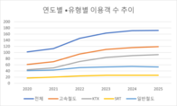 국민의 일상 이동 수단으로 자리 잡은 고속철도 이용객이 지난해 역대 최고치를 기록했다. 출퇴근과 여행 등 일상적 이동에서 고속철도 수요가 꾸준히 증가한 결과다. 국토교통부는 2025년 고속철도 이용객이 약 1억1900만 명으로 집계됐다고 14일 밝혔다. 이는 전년 대비 2.6% 증가한 수치로, KTX와 SRT를 포함한 고속철도 이용객이 역대 최고 수준을 기록했다. 같은 기간 간선철도 전체 이용객은 고속철도와 일반철도를 합쳐 1억7222만 명으로 전년 대비 0.6% 증가했다. 고속철도 가운데 KTX 이용객은 9300만 명, SRT는 2600만 명으로 집계됐다. 일 평균 이용객은 KTX가 25만4000명, SRT가 7만1000명 수준이다. 이용률은 KTX 110.5%, SRT 131.0%였으며, 승차율은 각각 66.3%, 78.1%로 나타났다. 고속철도 이용객 증가는 신규 노선 개통 효과가 영향을 미쳤다. 2024년 12월 개통한 중앙선 KTX-이음 노선은 2025년 한 해 동안 275만 명이 이용했다. 국토부는 같은 해 12월 30일부터 중앙선(청량리~부전)에 KTX-이음을 추가 투입했으며, 동해선(강릉~부전)에도 신규 열차를 투입해 운행을 확대하고 있다. 반