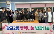수원시 영통구 광교2동 지역사회보장협의체가 올 한해 추진했던 2025년 「행복나눔 반찬나눔」사업이 막을 내렸다. 광교2동 지역사회보장협의체는 "지난 6월부터 12월까지 관내 독거노인 복지사각지대 대상자를 위한 「행복나눔 반찬나눔」 사업을 운영해 왔고 최근 성공적으로 마무리 하였다"고 11일 밝혔다. 광교2동 지역사회보장협의체 따르면 "「행복나눔 반찬나눔」은 관내 어려운 이웃에게 정기적으로 직접 반찬을 전달하며 따뜻한 정을 나누는 광교2동 주민들의 사랑을 듬뿍 담은 복지사업"이라고 설명했다. 지역사회보장협의체 위원을 비롯한 자원봉사자들은 각종 반찬 등을 구매하여 독거노인들을 직접 찾아가 전달하는 방식으로 운영해 대상주민들로부터 큰 호응을 얻었다. 이번 사업은 매월 1회 진행되며 기초생활수급자 독거노인 등을 우선 선정해서 7개월동안 꾸준하게 지원했다. 특히 반찬을 전달하면서 안부 확인도 병행해 독거노인들에 대한 정서적 돌봄으로 이웃사랑 나눔도 함께 실천시켰다는 평가다. 광교2동 지역사회보장협의체 이종금 위원장은 “단순히 반찬을 나누는 것을 넘어서 지역주민에게 이웃사랑 나눔을 실천하였고 대상자들도 만족하여 의미있는 사업이었다”고 밝혔다. 박남숙 광교2동장은 “올