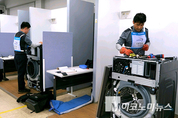 삼성전자서비스는 26~27일 경기 수원시 삼성전자 CS아카데미에서 ‘서비스 기술경진 및 안전혁신대회’를 개최하고 있다. 1986년 업계 최초 도입 후 올해로 30회를 맞은 ‘서비스 기술경진대회’는 엔지니어의 기술 역량을 높여 고객에게 고품질의 서비스를 제공하는데 기여해왔다. 특히 올해부터는 서비스 기술경진과 함께 ‘안전혁신대회’가 진행된다. 안전이 서비스 품질의 핵심 요소로 떠오르면서 임직원의 안전 의식을 높이고 안전한 작업 환경 조성을 위한 우수 사례를 발굴하기 위해서다. 실제로 안전혁신대회에서는 다양한 작업 환경에서 서비스를 제공하고 있는 엔지니어들과 함께 대한산업안전협회 및 안전보건공단 전문가들이 참여해 실효성 높은 아이디어가 발굴될 것으로 기대된다. 이번 대회는 ‘AI 서비스 미래와 안전 문화’를 주제로 열렸다. 경진대회는 △수리 경진 5종목 △서비스 혁신사례 4종목 △안전 혁신 1종목 총 10종목으로 진행된다. ‘수리 경진’은 서비스 엔지니어의 전문 역량을 평가하는 부문이다. 실제 고객 서비스 현장과 똑같은 환경으로 구현된 경연장에서 제품의 상태를 신속, 정확하게 진단할 수 있는지 중점 평가한다. 삼성전자 제품의 AI 기능이 고도화되는 추세에 맞춰