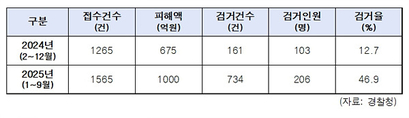 올해 ‘로맨스 스캠’(Romance Scam) 피해액이 1000억원에 달하는 것으로 나타났다. 로맨스 스캠은 연애 감정을 악용한 신종 금융사기 수법으로, 주로 SNS나 데이팅 애플리케이션을 통해 피해자에게 접근해 장기간 신뢰를 쌓은 뒤, 금전적인 요구를 하는 방식으로 진행된다. 26일 한병도 더불어민주당 의원(전북 익산시을)이 경찰청으로부터 제출받은 자료에 따르면, 올해 1월~9월에 집계된 로맨스스캠 피해액은 1000억원, 피해 사건 수는 1565건이었다. 지난해 2월~12월 대비 피해액은 325억원(48%), 피해 사건 수는 300건 각각 늘어났다. 최근 로맨스스캠은 가상화폐 투자를 유도하는 등 다른 사기 범죄와 결합돼 수법이 고도화되고 있다. SNS 대화를 통해 온라인상에서 친밀감을 쌓은 뒤, 허위 가상화폐 등 투자를 종용한 후 돈을 가로채고 잠적하는 이른바 ‘돼지 도살 수법’이 대표적으로 알려졌다. 그러나 범죄 거점이 해외에 있는 사례가 많아 경찰청 수사에 한계가 있는 것 아니냐는 지적이 나온다. 실제로 지난해 로맨스 스캠 검거율은 12.7%에 불과했고, 올해도 46.9%로 절반에도 미치지 못했다. 한병도 의원은 “초국경 사이버 범죄는 피해자가 많고 피