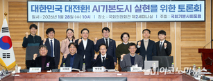 ‘대한민국 대전환! AI기본도시 실현을 위한 토론회’가 28일 국회의원회관에서 열렸다. 국회기본사회포럼(대표:박주민, 책임:용혜인·김영환·황명선)이 주최한 이번 행사에는 더불어민주당 임호선·허성무 의원 등 이 함께했다. 발제는 조영태 LH주택연구원 스마트도시연구센터장과 김희대 대구테크노파크 지능도시본부장이 맡았다.