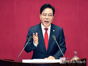 송언석 국민의힘 원내대표가 10일 “혼용무도(昏庸無道)의 100일을 끝내고 국민을 위한 반듯한 정치로 나아가자”고 강조했다. 송언석 원내대표는 이날 국회 교섭단체 대표 연설에서 이재명 정부 출범 100일이 되어간다면서 “어리석은 군주가 세상을 어지럽게 만든 시간이었다”며 이같이 말했다. 송언석 원내대표는 이날 “정치는 협치를 파괴하는 거대여당의 폭주 속에 정치 특검을 앞세운 야당 탄압, 정치 보복만 있을 뿐”이라며 “투자를 가로막고 일자리를 빼앗는 온갖 반기업, 반시장 정책으로 경제도 민생도 무너지고 있다”고 지적했다. 이어 “여당 대표는 걸핏하면 ‘해산’ 운운하며 야당을 겁박하고 모독하는 반(反)지성의 언어폭력을 가하고 있다”며 “겉으로는 협치를 외치면서 야당 파괴에 골몰하는 표리부동(表裏不同), 양두구육(羊頭狗肉)의 국정운영을 그만 멈춰야 한다”고 강조했다. 그러면서 “지금 국회의 모습은 다수 의석을 앞세운 집권 여당의 일방적인 폭주와 의회 독재의 횡포만 가득하다”며 “일당 독재의 폭주를 멈추고, 무한 정쟁을 불러오는 선동과 협박의 정치를 중단해야 한다”고 강한 어조로 말했다. 그는 “3대 정치특검은 이미 정치 보복의 도구로 전락했고, 야당 탄압은 끝이