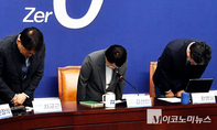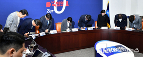 김선민 조국혁신당 대표 권한대행을 비롯한 지도부가 5일 국회 본관에서 현안 관련 기자간담회를 열고 당내 성비위 및 직장 내 괴롭힘 사건과 관련해 사과했다.