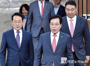 송언석 국민의힘 원내대표가 10일 국회 본관에서 열린 국정감사 대책회의에서 다음 주 시작하는 국정감사를 두고 “이번 국정감사의 기조는 독재를 저지하고 내 삶을 지키는 국감”이라고 말했다.