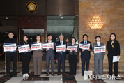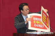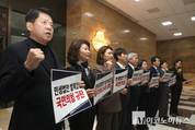 11일 오후 국회 본관 로텐더홀에서 개혁진보 야4당(조국혁신당·진보당·기본소득당·사회민주당) 은 기자회견을 열고 국민의힘의 민생법안 발목잡는 필리버스터를 규탄했다. 서왕진 조국혁신당 원내대표는 이날 “국민의힘은 국가미래와 국민 삶을 볼모로 잡고 있다. 찬성하지만 막아내겠다는 궤변으로 극한 생떼를 부린다”며 “소상공인을 보호하기 위한 필수 법안, 국민의 일상 안전과 소비자 권익을 지키는 법안 등 이 모든 법안을 모조리 막아 세우는 것은 정상적인 정치 행위가 아니라 다 같이 죽자는 정치적 테러”라고 비판했다. 이어 윤종오 진보당 원내대표는 “(필리버스터하는) 노력의 절반이라도 대한민국 헌정수습과 민생회복에 썼다면 지금 국민들 삶이 얼마나 달라졌겠나”라며 “1년 전에도 지금도 국민은 안중에도 없다. 자신들을 위해 민의의 전당인 국회를 내란변호 무대로 삼겠다는 것인데, 국민들은 결코 용서하지 않을 것”이라고 지적했다. 용혜인 기본소득당 대표 역시 “무제한토론은 윤석열 내란수괴 시절 국회를 무력화하기 위해 남용하던 법률안 거부권 같은 게 아니다”라며 “소수당의 의견을 존중하기 위한 무제한토론 제도의 정신과는 완전히 반하는 짓이다. 내란세력이 반복해온 국회모욕, 국회무