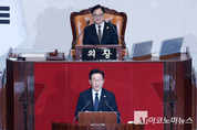 국민의힘이 4일 이재명 대통령의 내년도 예산안 시정연설에 대해 ‘전면 보이콧’을 결정했다. 국민의힘은 추경호 전 원내대표에서 대한 구속영장 청구를 규탄하며 이 대통령의 재판 재개도 촉구했다. 최수진 국민의힘 원내수석대변인은 이날 의원총회 후 “국민의힘은 오늘 본회의장에 들어가지 않는 것으로 결정했다. (이 대통령) 시정연설을 보이콧하고 로텐더홀에서 강력히 규탄할 예정”이라고 말했다. 장동혁 국민의힘 대표는 이날 의원총회에서 “이 대통령이 시정연설을 하기 위해 국회에 올 예정이다. 이번이 마지막 시정연설이 돼야 한다”며 “이재명 정권을 끌어내리기 위해 모든 힘을 모아야 한다”고 강조했다. 송언석 원내대표는 “특검은 추 전 원내대표의 구속영장을 발부했다”며 “구속영장 내용은 부실하기 짝이 없다”고 비판했다. 그러면서 “공모가 없었는데 어떻게 ‘내란중요임무종사자’로 영장을 발부하는지 이해하기 어렵다. 야당을 위헌세력·내란정당으로 몰아서 해산시키겠다는 거 아니냐”고 일갈했다. 한편, 이재명 대통령은 이날 시정연설에서 한미정상회담, 한중정상회담 등에 대한 성과를 소개하며 “최악의 상황에서도 최선의 결과를 만들기 위해 영혼까지 갈아넣으면 총력을 다했다는 말씀을 드린다”