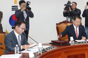 김병기 더불어민주당 원내대표가 6일 “민주당은 이재명 정부와 함께 대한민국 자주국방을 반드시 현실로 실현시키겠다”고 밝혔다. 김병기 원내대표는 이날 국회 본관에서 열린 정책조정회의에서 “안규백 국방부장관은 국회에서 전작권 환수에 의미 있는 진전이 있었다고 밝힌 바 있다”며 이같이 말했다. 김 원내대표는 “한미 합참의장들도 같은 평가를 내놨다. SCM 공동성명은 정상회담 팩트시트가 완성되는 대로 발표될 예정”이라면서 “이 모든 합의는 한미 동맹을 더욱 튼튼하게 한다. 자주국방의 길을 여는 중요한 발걸음이기도 하다”고 강조했다. 그러면서 “이재명 대통령은 헤그세스 미국 국방부장관과 만나 임기 내 전시작전권 전환과 한미 동맹 강화 의지를 밝혔다”며 “민주당은 전적으로 동의하며 적극 지지한다. 자주국방은 민주 정부 20여 년 뼈를 깎는 노력 끝에 쌓아온 결실”이라고 강조했다. 그는 대한민국의 국익과 미래를 위해 한미 협상의 후속 입법에 최선을 다하겠다고도 밝혔다. 김 원내대표는 “한미 간 경제 안보 협상이 거의 마무리됐다. 경제 협상과 대규모 투자 논의는 끝났고 안보 협상만 남아 있다”며 “APEC의 성과와 한미 협상의 결과를 부정할 사람은 없다”고 주장했다. 이어