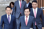 송언석 국민의힘 원내대표가 10일 국회 본관에서 열린 국정감사 대책회의에서 다음 주 시작하는 국정감사를 두고 “이번 국정감사의 기조는 독재를 저지하고 내 삶을 지키는 국감”이라고 말했다.