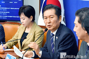 정청래 더불어민주당 대표가 10일 국회 본관에서 열린 최고위원회의에서 이재명 정부 첫 국정감사에 대해 “이번 국감은 윤석열 내란 잔재 청산의 국감”이라고 했다.