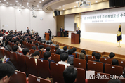 정청래 더불어민주당 대표는 6일 “충남·대전이 통합하게 되면 360만 인구와 지역 내 총생산이 190조원 규모의 통합 경제권이 형성된다”고 강조했다. 정청래 대표는 이날 국회 본관에서 열린 충남·대전통합 및 충청지역 발전특별위원회 제2차 전체회의에서 “경제에도 규모의 경제 이런 말을 하듯이 통합에도 사이즈에 따르는 시너지 효과가 충분히 있을 것”이라며 이같이 밝혔다. 정 대표는 “충남·대전은 60분 생활권 안으로 마치 이웃사촌처럼 빠르게 만나고 여러 가지 시너지 효과도 낼 것”이라면서 “모든 과정은 민주적 절차에 의해서 이루어지게 된다”고 말했다. 그러면서 “충남·대전은 이미 광역의회 그리고 광역단체장이 다행히 통합에 대한 찬성 합의를 한 바 있기 때문에 이제 국회의 법적 절차만 남아 있다”면서도 “충남·대전 통합의 주체와 주인은 거기에 살고 계신 360만 우리 국민들이라고 생각한다”고 했다. 황명선 특위 위원장은 2차 회의 후 “새 통합시의 명칭은 아직 정리가 안 됐다”며 “공론화를 통해 결정될 것”이라고 설명했다. 이어 “통합 시장을 지방선거에서 뽑을 수 있도록 가칭이지만 6월 1일 충청특별시를 출범시킬 수 있도록 하겠다”고 밝혔다. 박정현 공동위원장은