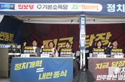 18일 국회 본관 앞 정치개혁 농성장에서 10일차 결의대회가 열렸다. 이날 결의대회는 기본소득당 신지혜 최고위원의 사회로 진행됐고 조국혁신당 박은정 의원, 진보당 정혜경·손솔 의원, 사회민주당 한창민 대표, 기본소득당 김진서 기본소득당 청년대학생위원장 민주노총 유혜진 학교비정규직노동조합 정치통일위원장 등이 참석해 정치개혁을 촉구했다.